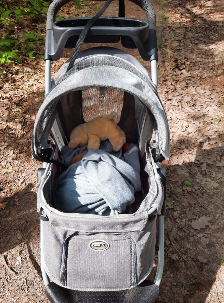 Overgegaan op een nieuw tuigje. Het eerste tuig is lastig om doen bij een wriemelende pup. De voorpoten moeten in het tuig gestoken worden. Dat lukt me alleen snel als ze slaperig is. Bijkomend voordeel van het Hurtta tuig is dat er een soort van handvat aanzit. Precies datgene dat ik nodig heb met deze ondernemende dame.
