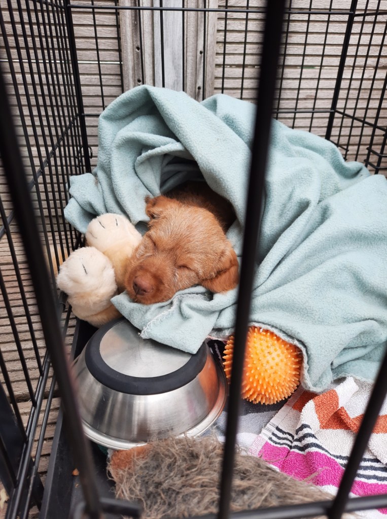 Vanmorgen om 8.00 was het nog zo rustig dat ik toch maar even beneden ben gaan kijken of alles in orde was met Pippa. En dat was gelukkig zo :). Ze lag keurig te wachten voor de benchdeur.
