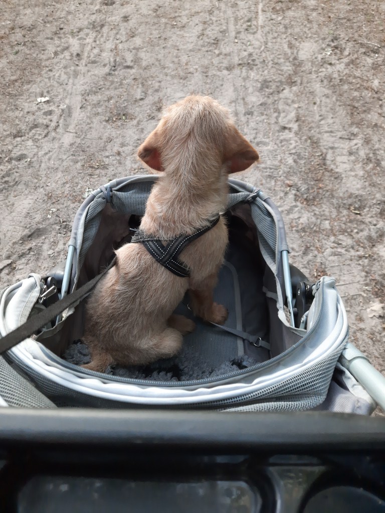 Amy heeft overduidelijk weer wat verkeerds gesnaaid tijdens een wandeling en heeft de hele nacht gespookt. Ze had zwaar diarree en we stonden zo ongeveer elk uur buiten. Na een dweilbeurt om 2.00 uur in de huiskamer heb ik haar maar in de gang geplaatst in een oude stoffen bench. (Mijn grote metalen bench is momenteel in gebruik voor het puppenmonster) Ben er wel blij mee dat ze aangeeft wanneer ze er echt uit moet: ze blaft even kort en dan is het snel naar beneden en naar buiten. Bench kan weggegooid maar was toch al aan vervanging toe.