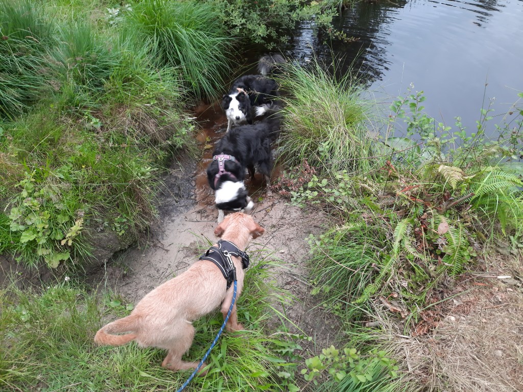 De teamwandeling van vanavond genoten in de Mensinghe. Gestart met Pippa in de buggy en de teamleden er aangelijnd naast. Komt er bij de parkeerplaats al zo’n ongeleid projectiel op ons afgedenderd. Borders direct losgeklikt van de lijn en lekker laten gaan en Rebel het op laten lossen. Zelfs aangelijnd weet hij van wanten. En dan mopperen de eigenaren op en over mij. Maar ik ben erg blij met mijn dappere ventje en dat laat ik hem ook weten. Ik heb echt zo’n hekel aan dat onbehouwen hondengedrag.