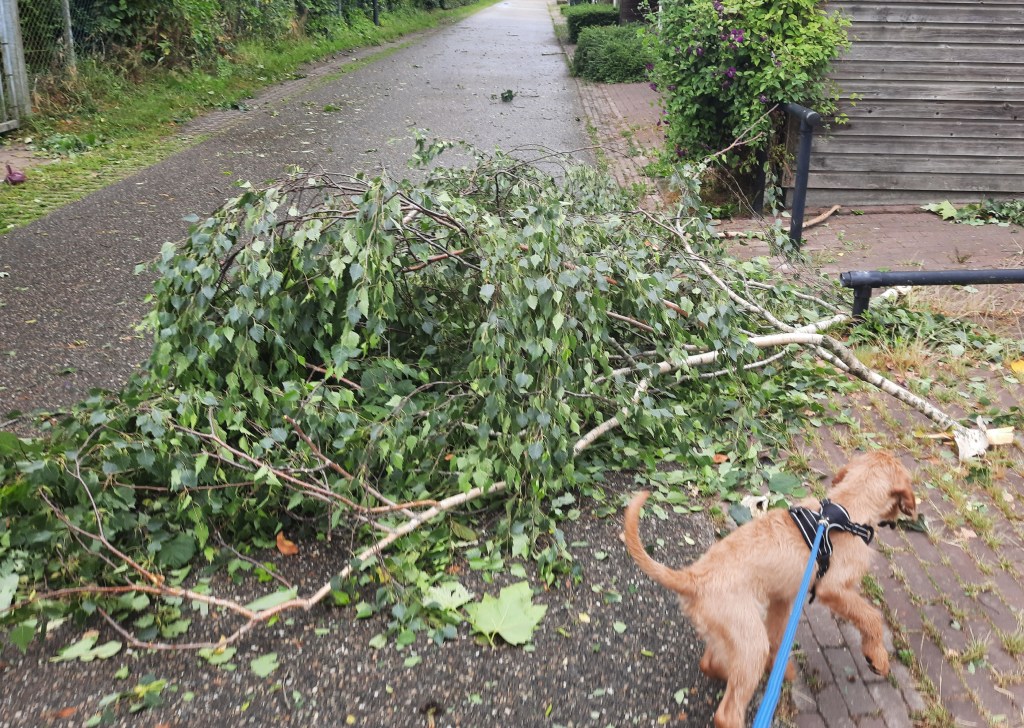 Mijn arm is vandaag meerdere keren bijna uit de kom gerukt: Pîppa schiet buiten achter alle wegwaaiende blaadjes aan. Zeer onbeheerst en eigenlijk wel ongewenst. Voordeel is wel dat ze lekker moe wordt van deze activiteit dus over slapen hebben we niet te klagen.