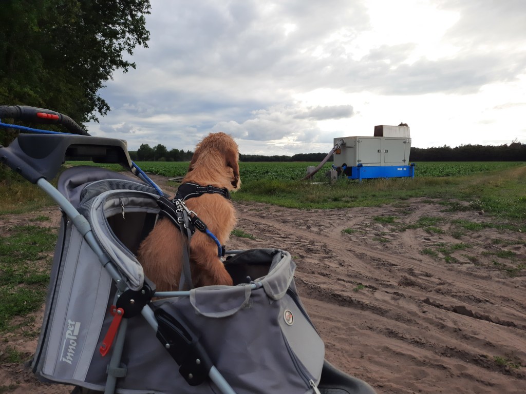 De avondwandeling es in Steenbergen gedaan. Veel zand – behoorlijk zwaar met de buggy maar de andere teamleden konden even lekker lang vrijuit racen. Op een smal stukje kwamen we een paard en wagen tegen. Dit heeft Pippa nog nooit gezien en ze was behoorlijk geïnteresseerd. En uiteraard onverwachts omhoog springen als de aanspanning naast ons is… Resultaat: paard komt deels omhoog en de kar maakt een zwieper richting maisveld. Gelukkig herstelde zich dit snel en samen met Pippa de aanspanning nagekeken.