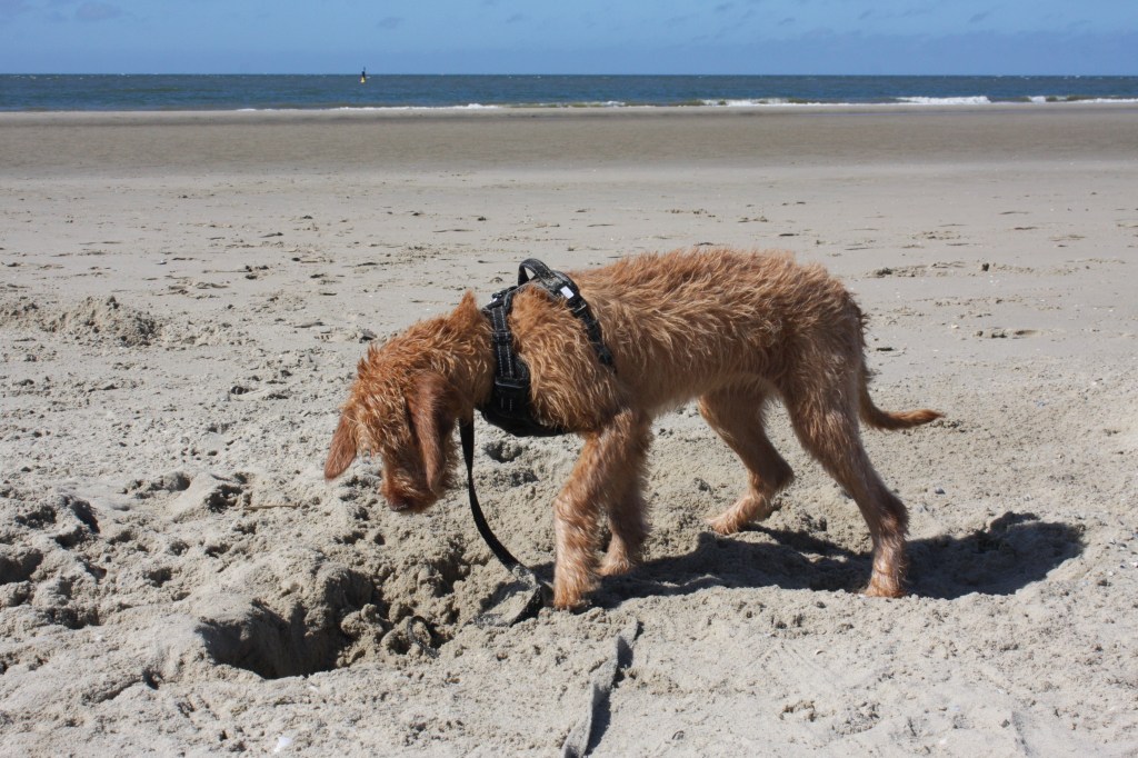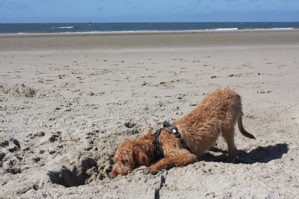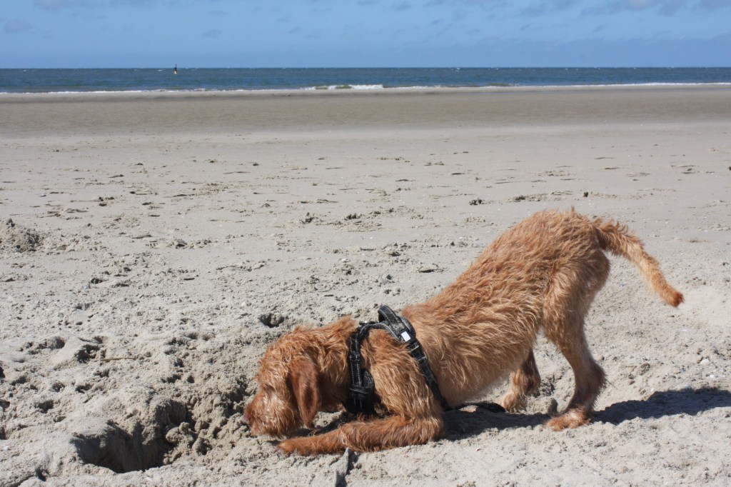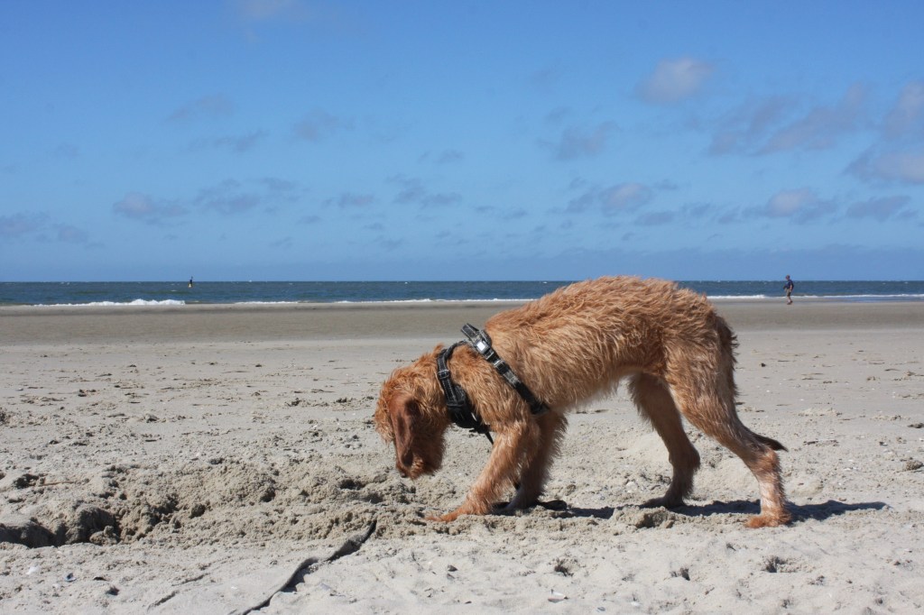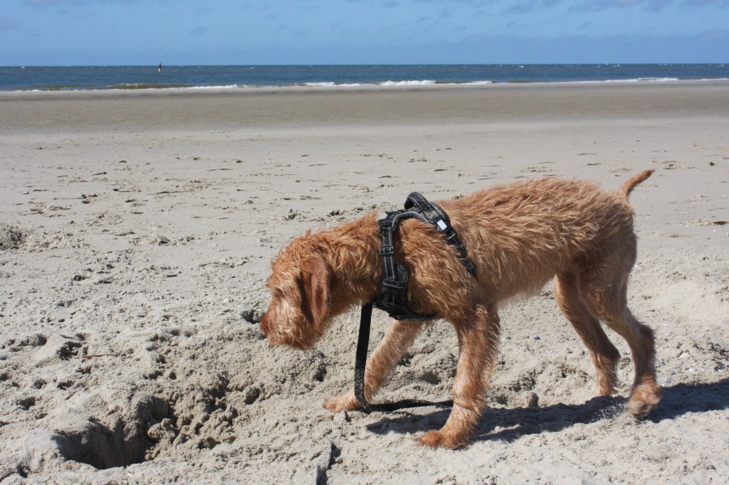De boot van 8.30 uur genomen en eerst aan de wandel bij Paal 17. Lekker rustig nog op het strand en op deel vanaf de badhuisjes de honden (op Darius na) even lekker los laten spelen. Darius in de buggy gezet omdat hij er niet van houdt om rechtstreeks op het zand te liggen. Het was vloed en dan moet je Pippa dus zeker aan de sleeplijn houden want het maakt haar totaal niet uit hoe diep het is en het maakt haar ook totaal niet uit dat ze kopje onder gaat. Alleen maar feesten en het gevaar ziet ze uiteraard niet. Na de wandeling weer terug naar de auto voor het volgende deel.