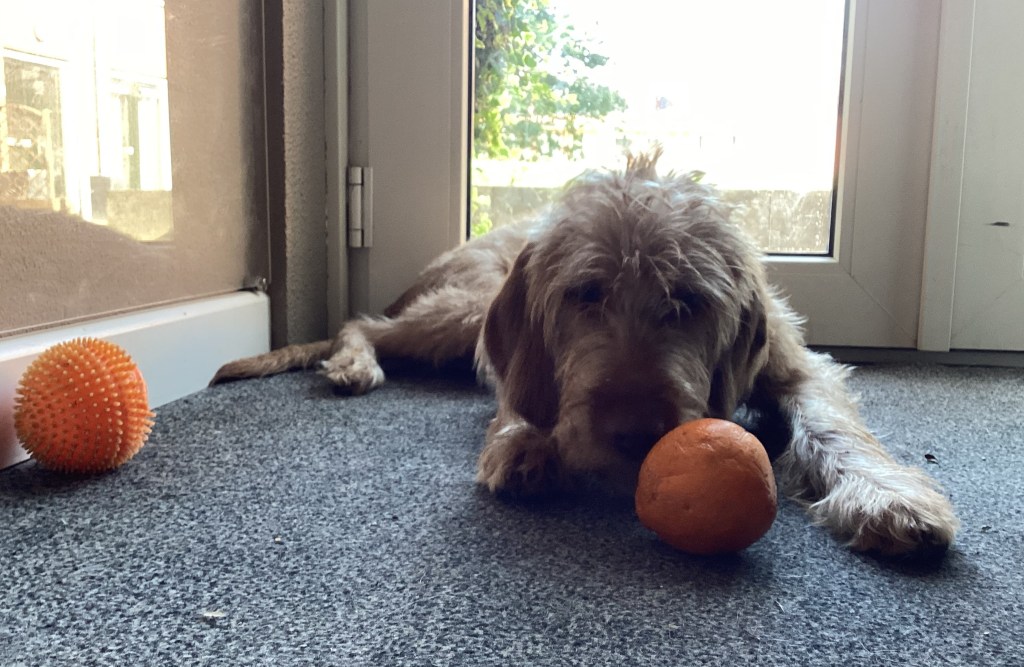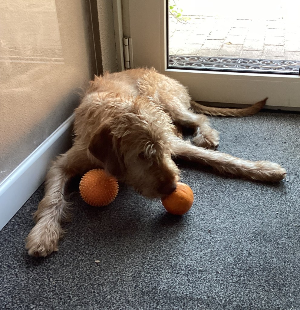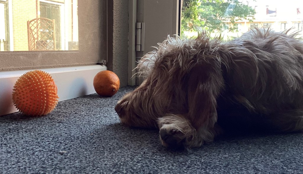 Van de week heeft Pippa een Minneola van het aanrecht gejat. Het duurde even voor ik het doorhad omdat ze ook een oranje egelbal heeft en als je maar met een half oog op je hond let, ziet dat er hetzelfde uit. Tot je het stuiterlawaai in de gang hoort…