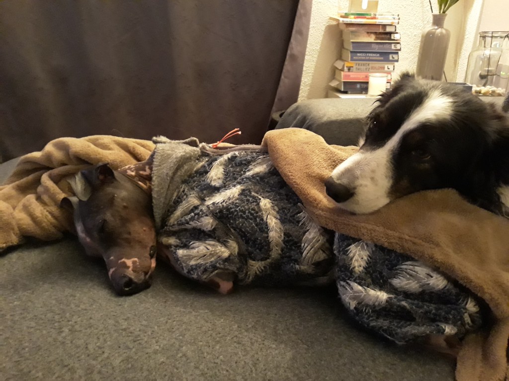 Rare dag vandaag. Vanmiddag met het oude mannetje naar de dierenarts om hem te laten checken. Hij plast al lange tijd steeds in huis, heeft diverse tumoren, allergie en kraakt als je hem optilt. De junior dierenarts waar ik meerdere keren bij op consult geweest ben heeft mij pijnstilling, luiers en anti-allergie medicijnen aangeraden maar ik ben er eigenlijk wel een beetje klaar mee. Als de herfst echt start moet het kereltje voor iedere uitlaatsessie een jasje aan tegen de kou en of de regen. Dat moet naar mijn idee wel pijn doen met die rammelde botjes.