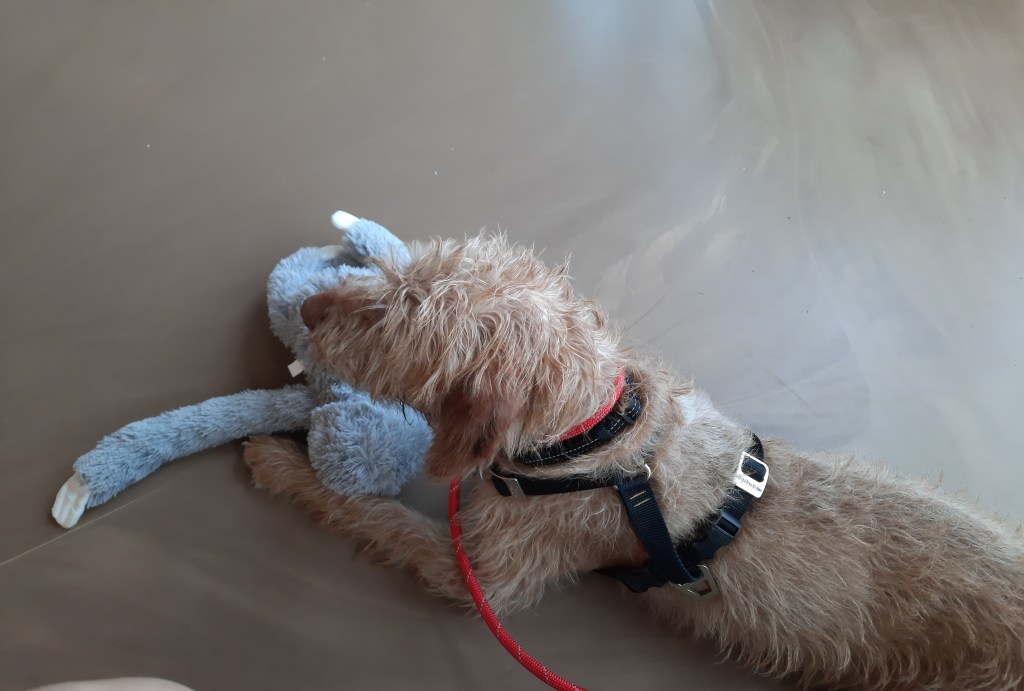 Op de boot Pippa meegenomen naar het restauratiedeel. Koffie gehaald en met enige moeite (door mijn stuiterbalhond) afgerekend bij de kassa. Plaats genomen op een bankje en Pippa voor me op Af gelegd. Hierop komt de rust in haar terug en daar komt de cassière bij ons en die vraagt ze of ze Pippa even mag aanhalen. Hier hou ik nou van: ze heeft mijn hond net genegeerd die knetteridioot deed en nu even langskomen als ze weer rustig is. En ja tuurlijk mag dit als Pippa maar op 4 pootjes blijft-anders graag stoppen met knuffelen. En Pippa gedraagt zich echt voorbeeldig, laat zich aaien en leunt zachtjes tegen deze vrouw aan. Volgens mij daalt het verstand steeds meer in.