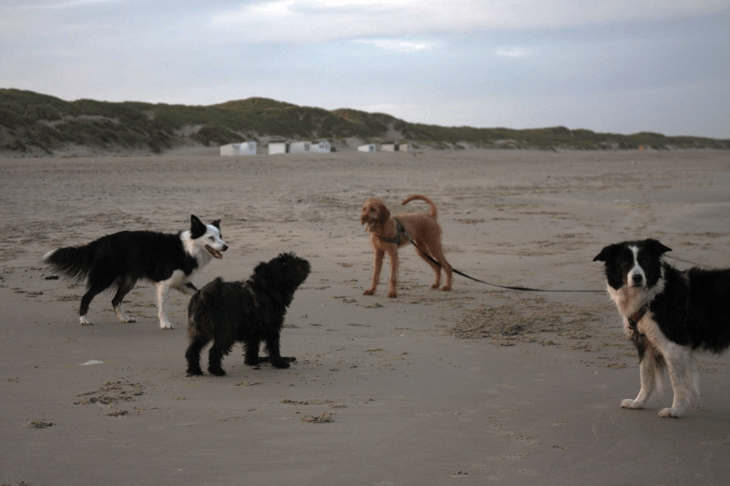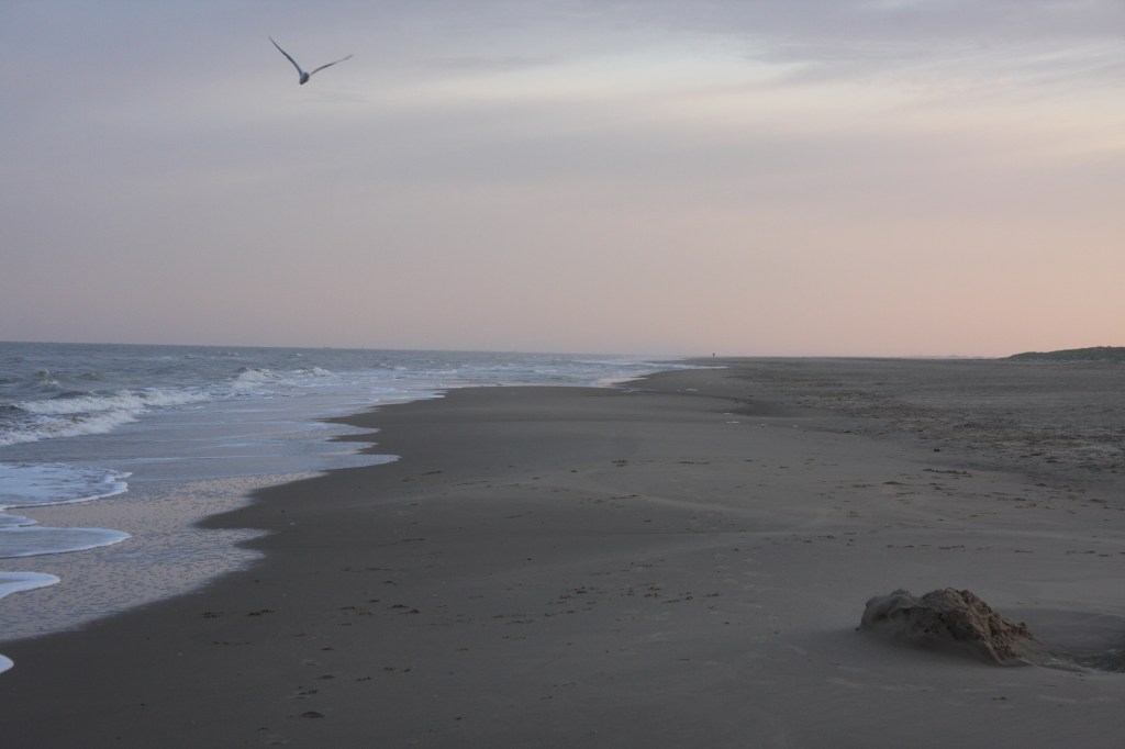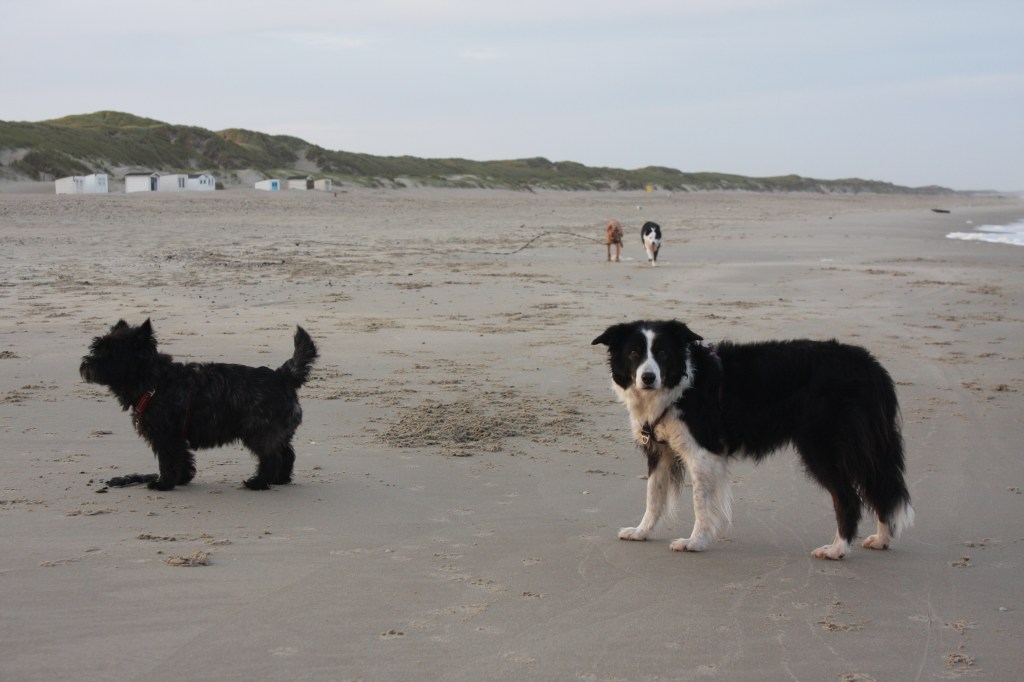 Ook vandaag weer vroeg op en als één van de enigen op het strand. Niet zo gek om 7.00 uur…. Alle vier de honden lekker los laten lopen. In de ochtend durf ik dat nog wel aan met Pippa; in de middag is ze me al es achter een vlindertje aangesprongen, zo de zee in. Voor je ’t weet kun je die hond ophalen op Vlieland.