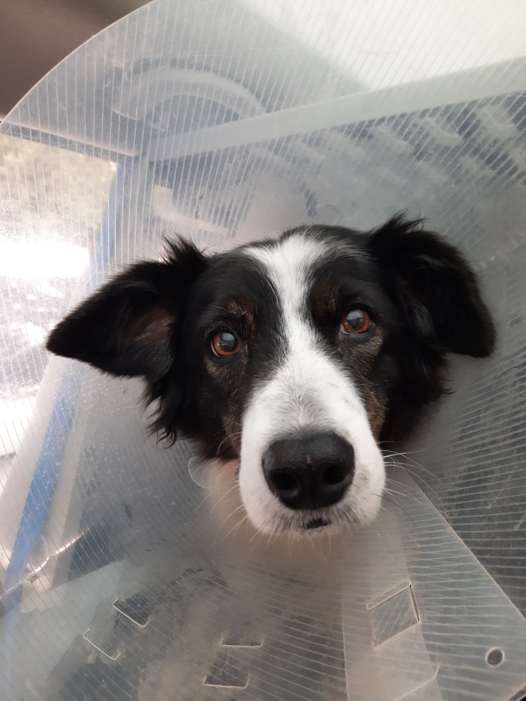 Noya mocht vandaag naar de dierenarts in verband met jeuk die maar niet overgaat. Sinds afgelopen vrijdag haar al een kap omgedaan omdat ze zichzelf gewoon kapot bijt. Haar hele buik is inmiddels haarvrij door het krabben… Deze extreme jeuk heeft ze in het verleden ook al een paar keer gehad; er is geen aanwijsbare reden voor. Meestal krijgt ze een spuit tegen de jeuk en een kap tegen het bijten. Binnen een paar dagen is het dan over. Ook nu weer een spuit Prednison en daarnaast tabletjes Prednison voor een aantal dagen.