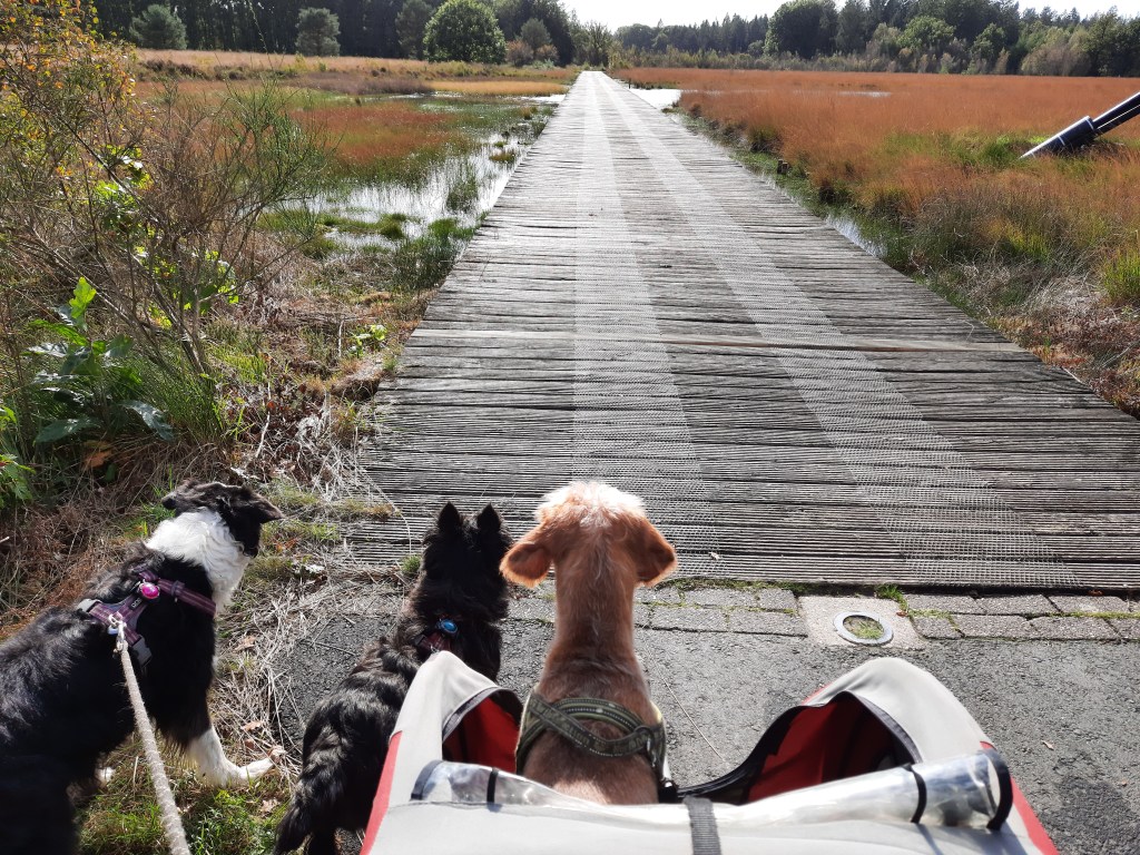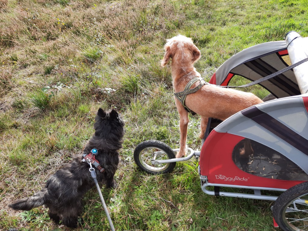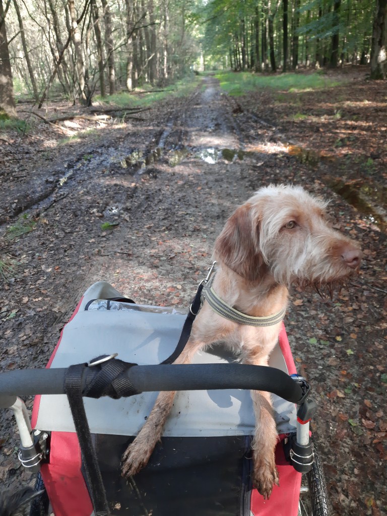 Aangezien het terrein van jachttraining in een prachtig wandelgebied ligt, vandaag ruim op tijd die kant op gereisd. Auto geparkeerd op de gebruikelijke plek en de buggy in elkaar gezet en aan de wandel. Het was fris maar droog en we hebben lekker doorgestapt. Genoten van het mooie herfstbos. Pippa op rust gehouden in verband met de aankomende training en met een blij stel terug bij de auto. Precies op tijd voor de training van Pippa.