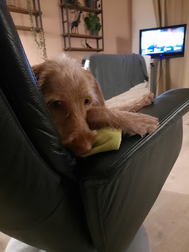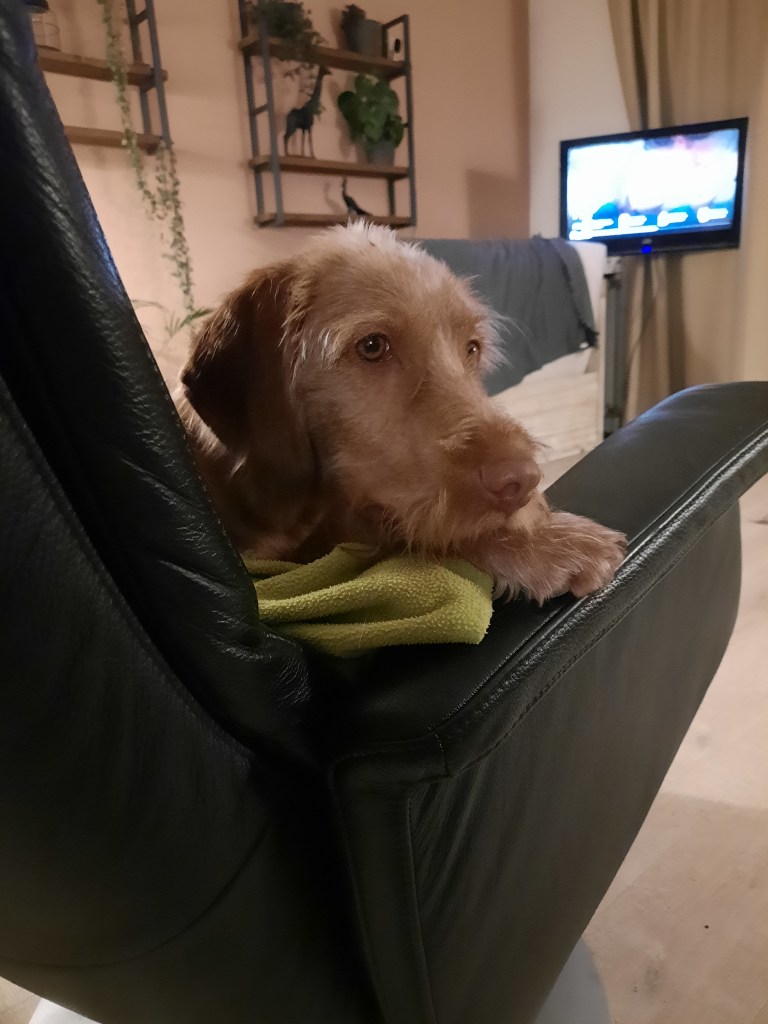 Situatie: hondenbed afgesloten voor Pippa in verband met zoomies. Even naar de gang en je plek (verboden voor honden) bezet vinden.