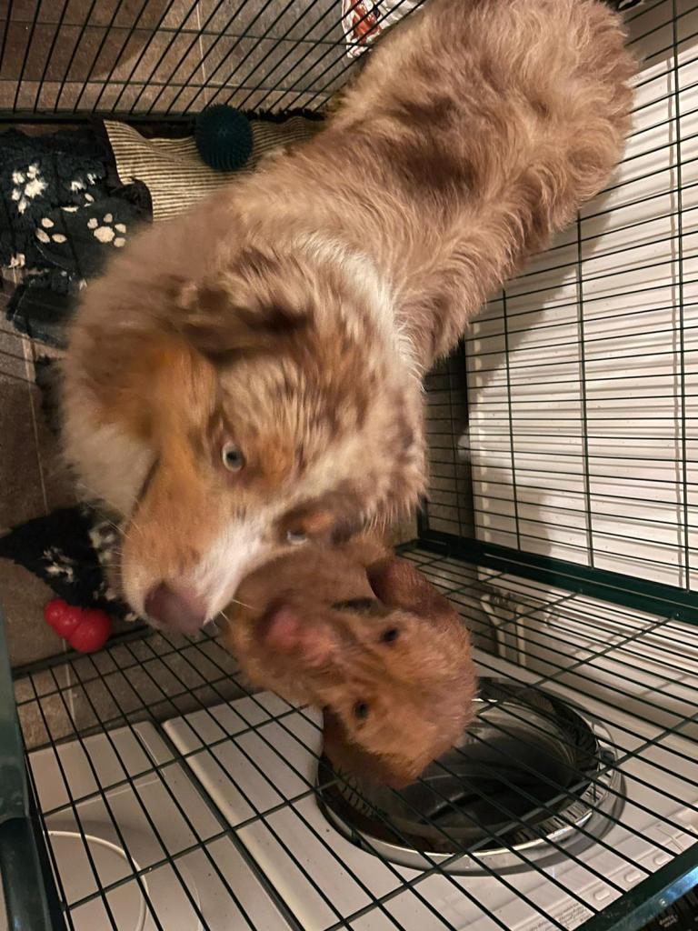 Na de operatie aan mijn pols de eerste Pippa-filmpjes al bekeken. Pippa vermaakt zich uitermate goed; de Aus reu vind haar leuk en omgekeerd is het ook het geval. Kadootje. Hij moest haar alleen duidelijk maken dat hij het niet fijn vindt om constant haar smakpoten op z’n kop te voelen. Dus ik geef in mijn reactie aan de oppas aan, dat ze daar thuis ook wel een handje van heeft en vraag of het nu doorgedrongen is bij Pippa. Volgens haar na zo’n 300 pogingen inmiddels wel…