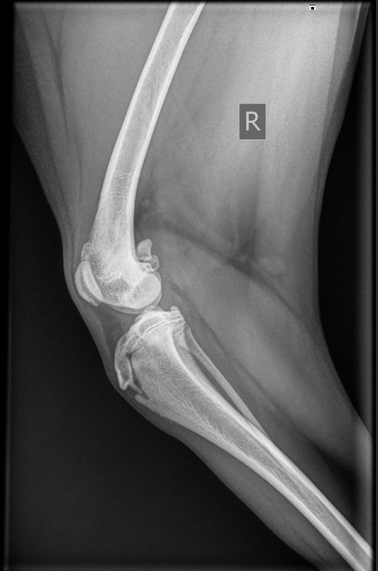 Doordat ik een second opinion wilde, ben ik uitgekomen bij een orthopedisch chirurg in Woerden. Daar ter plekke werd beoordeeld dat dit echt niet vanzelf goed zou komen, dat het om een behoorlijke patella luxatie gaat en dat een operatie noodzakelijk is om haar als actieve hond een goed leven te geven. Ook gaat de knieschijf er naar buiten toe uit en dat is ronduit uitzonderlijk te noemen. Zij wilden de operatie echter het liefst pas uitvoeren als de groeischijven van Pippa helemaal dicht waren. Op die manier is het maar 1 operatie in plaats van 2, want door de groei moet je immers anders nog een keer. (De foto hieronder is van november jl. waarin je dus nog open groeischijven kunt zien.) Al maanden loopt Pippa dus zoveel mogelijk rechte lijnen, speelt ze zo min mogelijk vrij met andere honden, loopt ze absoluut geen trappen en is springen eigenlijk niet de bedoeling (maar bij deze wilde gewoon niet tegen te houden). We moeten de slijtage aan de knie daarmee zoveel mogelijk beperken.