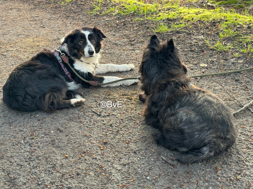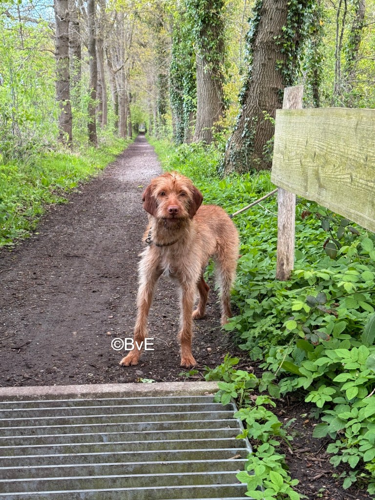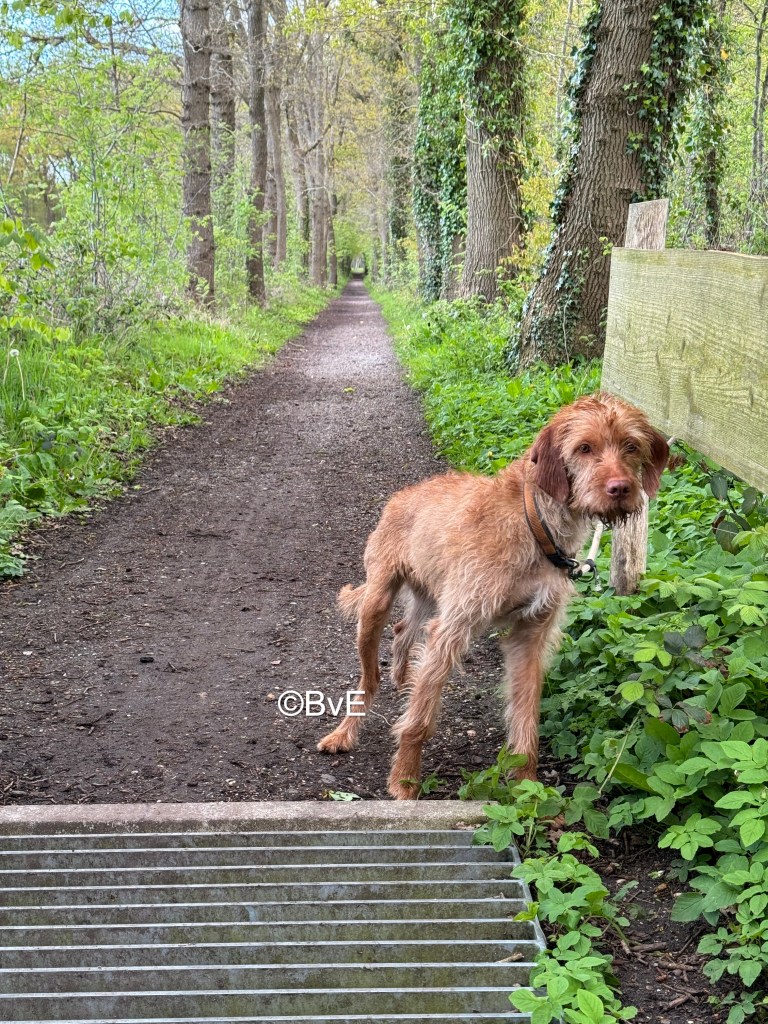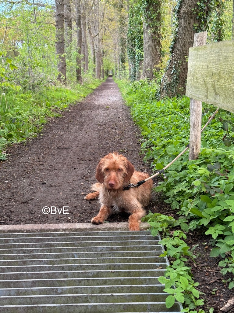 Als de leidinggevende eindelijk haar bak voer leeg heeft, moet ik naar de gang met de deur dicht zodat ze de andere huisgenoten in de kamer aan de riem kan doen. Met mij samen vind ze dat geen goed idee. Snap ik niet, want het is erg leuk om tijdens het aanlijnen Amy op de kop te springen. Dan krijg je er geen straf voor! Van Amy dan, want voedselvoorziening gaat me dan “Hou op!” noemen en daar wordt ze niet aardiger van. Maar goed, gewoon niets van aantrekken. Je kunt daar ongestoord mee door gaan tot de voedselvoorziening me bij mijn baard pakt en dan nogmaals “Hou Op!” Zegt. Dan moet je stoppen want daarna blijft ze niet meer zo aardig. Maar als je je dan gewoon van je beste kant laat zien (en daar ben ik supergoed in) kun je gewoon weer opnieuw beginnen. Maar hé, ik dwaal af.. we gaan als alles aangelijnd is naar buiten. Voedselvoorziening wil dat je wacht tot zij zegt dat je naar buiten mag. Dat kan ik heel goed en ik let ook heel goed op dat ze het écht zegt dat het mag, want anders ga je zo weer naar binnen en gaat de deur dicht. Voedselvoorziening moppert dan ook nog es; blijkbaar vindt ze het heel belangrijk dat ik wacht bij openstaande deuren. Maar ik kan dat! Zelfs als de leidinggevende vergeet dat je niet door mag lopen en gewoon naar buiten sjouwt; dan wacht ik wél netjes. Als we dan eindelijk naar buiten mogen zorg ik dat ik voorop loop naast Amy. Dan is het vervolgens een verrassing of we rechtdoor gaan richting parkje of linksaf voor een lange wandeling. Tegenwoordig gaan we vaak linksaf; prachtige route vind ik dat. Veel te lezen onderweg en duiven en eenden om aan te wijzen. Als ik bij eenden mooi ga voorstaan, wordt de voedselvoorziening altijd heel blij. Dan vertelt ze nog even dat ik het supergoed doe en daar wordt ik ook blij van zonder dat ik teigetje-sprongen ga maken.