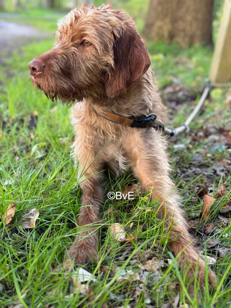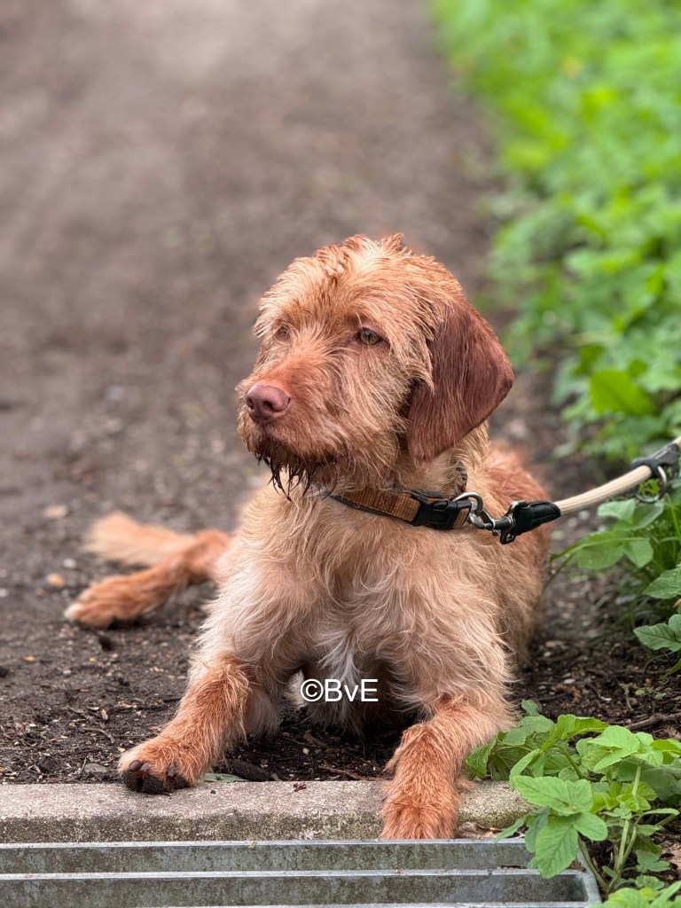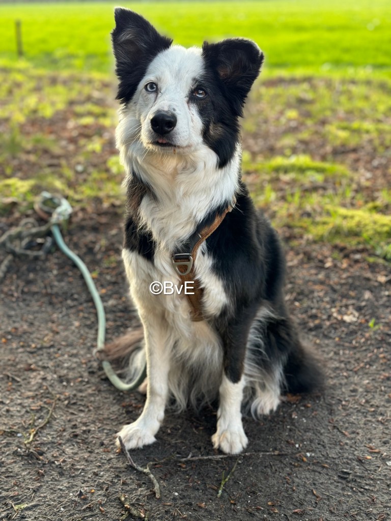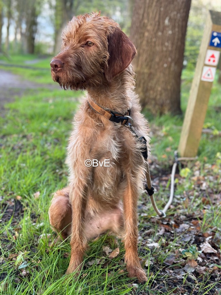 Na mijn slapie mag ik weer uit de bench. Gaan we weer wandelen en daarna mag ik spelen of gaan we trainen. Net waar de voedselvoorziening maar zin in heeft. Als ze dat vest aan doet, ga ik in ieder geval heel goed opletten. In die zakken zit van alles joh! En dat zie je niet aan de buitenkant. Brokjes, dummy’s en mijn favoriete trekspeeltje dat ik alleen mag hebben als meester Robin lawaai maakt op de training. Tijdens onze trainingen heeft ze ook een andere lijn voor mij; een hele lange lijn en dat loopt veel lekkerder dan de gewone wandellijn. Ik mag dan zonder teamleden mee met de voedselvoorziening en ik moet heel goed opletten. Vooral als ze fluit: fluit ze één keer dan moet ik onmiddellijk terug naar de voedselvoorziening en als ze twee keer kort fluit moet ik gaan zitten. Af en toe best verwarrend hoor; als ik dat fluitje hoor ga ik gelijk naar haar terug en dan fluit ze nog een keer…moet je weer gaan zitten terwijl je net op volle gang bent. Pfff. En zij van de voedselvoorziening is bijna net zo slim als ik hoor: ze kreeg in de gaten dat ik al vast terugkwam als ze de fluit pakte en nu heeft ze die fluit constant in de mond. Beetje flauw eigenlijk wel. Voedselvoorziening speelt de afgelopen weken ineens veel kiekeboe met mij: ik moet buiten op AF en dan gaat zij weg. Maar ik weet best dat ze altijd weer opduikt dus ik blijf maar gewoon op AF liggen en dat levert ook nog lekkers op. Win-win. En als ik vind dat ik niet genoeg snacks krijg tijdens de training snaai ik onderweg nog wat kattenpoep maar dan moet je wel supersnel zijn want de voedselvoorziening vindt dat niet zo grappig. Maar hé, ik heb een lange lijn en ben veel sneller dan haar.