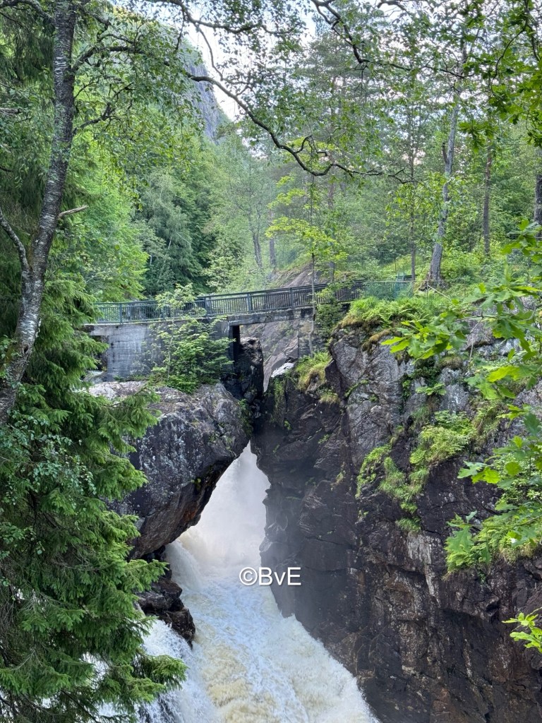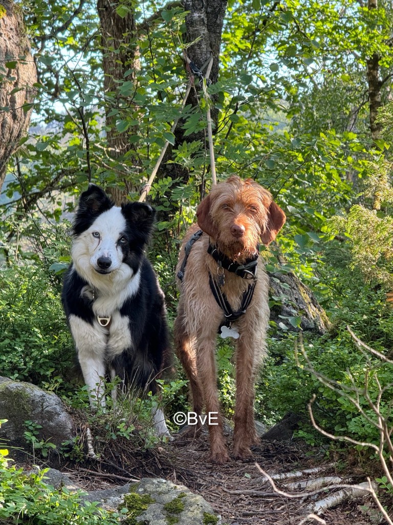 Oude stadsdeel bezocht; honden blij met de wandeling. Daarna weer in de auto voor rit naar camping Kvasfossen. Toch ook weer dik een uur. Daar mooi plekje uitgezocht en tent opgebouwd. Na uurtje Duitse buren. Meneer wilde erg graag Pippa knuffelen, zelfs wel voor eigen risico op bijten, best dan maar. Pippa stapeldol en mevrouw ging ongevraagd met Amy een gooispelletje doen. Daarom zeg ik doorgaans ook gewoon NEE. Maar goed, het zijn je buren en zo. Amy speelgoed afgepakt en Pippa op arm genomen en rust weer teruggebracht. Iedere minuut bij de tent is voor de honden vanaf nu Rust. Zwaar verdiende rust.