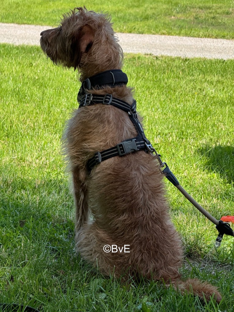 Ook kwamen we in dat moerasgebiedje een Noorse dame tegen met soort van spierwitte mini keeshond. Die hond liep overduidelijk wél over de plankjes. Ik wacht even zodat zij eerst over de plankjes kunnen en mevrouw start bij mij gekomen, een verhaal in het Noors tegen mij. Hierop geef ik maar in het Engels aan dat ik haar niet versta en ze vraagt vervolgens in het Engels of haar hondje even mag kennismaken. Pippa krijgt ineens zicht op de hard snuivende hond in caviaformaat en schrikt zich een hoedje. Reactie: blaffen. Mevrouw schrikt daarover van en ik zeg olijk dat dat het antwoord van mijn honden op haar vraag is. Wij terug over de plankjes; Pippa gedwongen er op te blijven en haar ook verboden om Amy er vervolgens gewoon vanaf te duwen. Katsaf weer terug bij de tent. Maar even wat strenger naar Pippa vanaf nu denk ik zo.