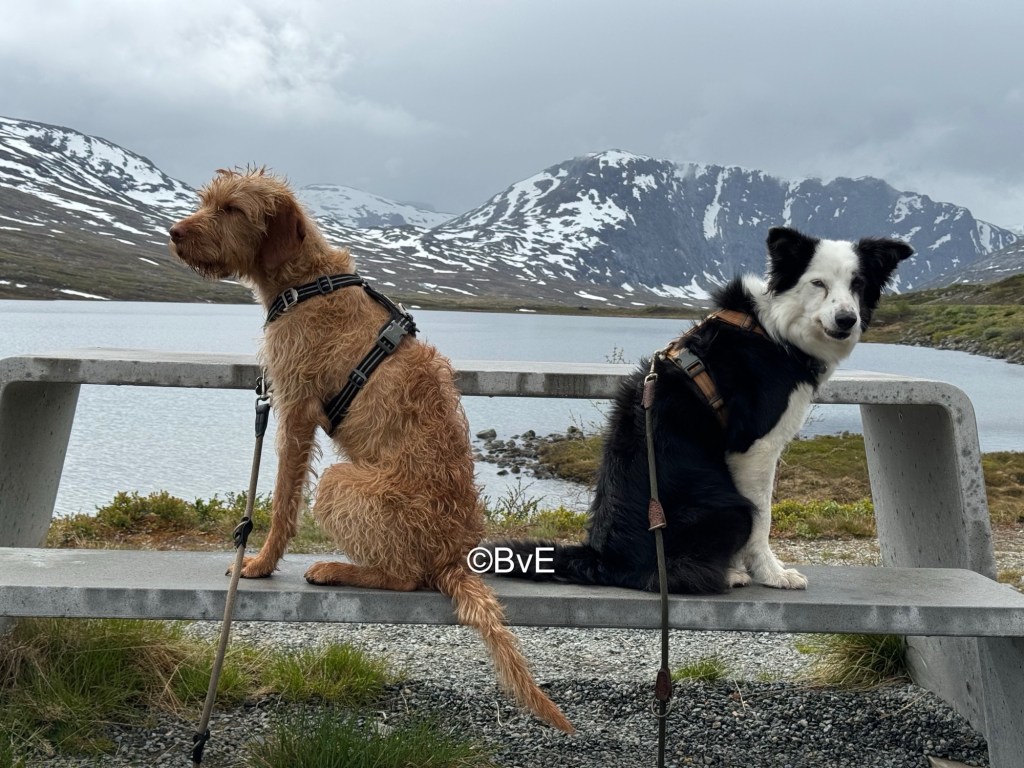 In verband met de voorspelde regen maar een toertocht gemaakt. Korte stukjes buiten de auto. En dan zie je wat een stoere hond Pippa is: bruggetje over een waterval? Lekker links en rechts kijken terwijl Amy zo dicht mogelijk bij de grond blijft en ook het liefst zo veel mogelijk in het midden van de brug blijft.