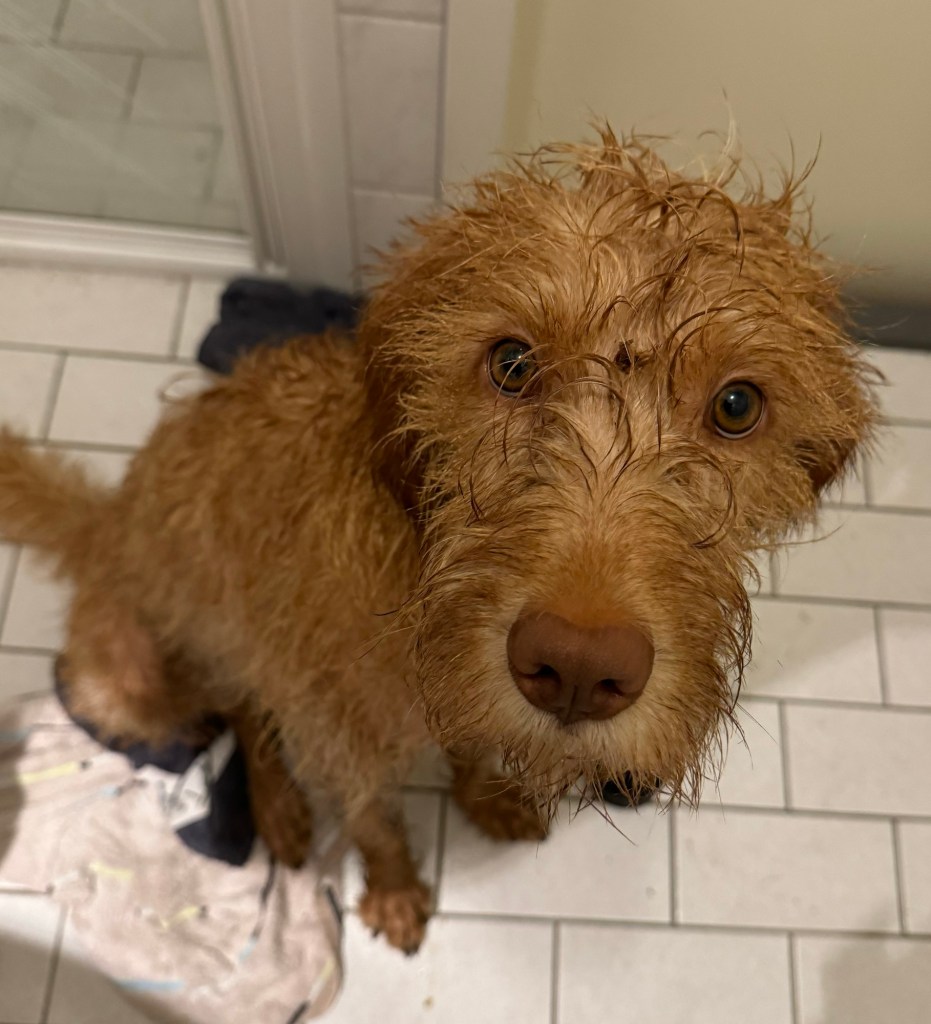 StinkyWinky, nu ze weer hersteld is, onder de douche gezet vandaag. Pippa vond het eerst nog geweldig dat ze mee naar de bovenverdieping mocht, tot ze de badkamer in moest…Onder de douche vond ze maar zozo maar ze onderging het gelukkig wel rustig. Afdrogen gaat altijd wel goed dus vandaag niet anders. Ze ruikt nu weer lekker naar Pippa 🙂