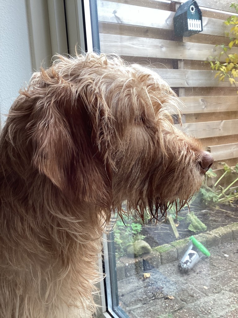 Viel niet zo goed dat ik dat deed. Kikker sprong een andere struik in en daarop Pippa maar naar binnen gedirigeerd omdat ik wel een idee heb hoe dat anders eindigt.