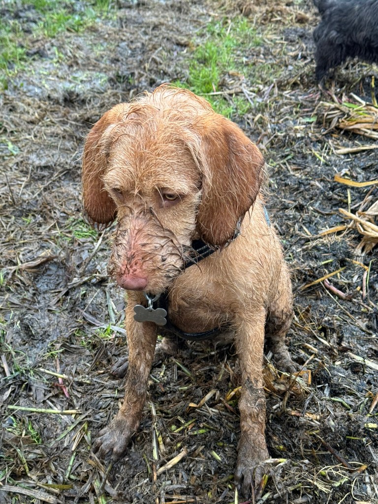 Rondje gemaakt en erg smerig teruggekomen. Sinds gisteren staan de kennels weer in de auto en daar was ik nu heel erg blij mee. Noor vindt het ook volkomen normaal dat ik haar daar in zet.