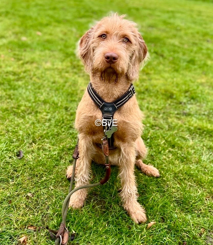 Als wij ons rondje solo mogen maken, krijg ik Noor er maar moeilijk bij maar het staan voor “keurmeester” juf Inge gaat wonderwel. Inge haalt haar handen door de vacht van Noor terwijl ik Noor ondertussen afleid met een superlekker koekje. Inge merkt op dat de vacht echt aan het veranderen is. (Dit klopt en mijn handen jeuken ook om er fatsoenlijk een kam doorheen te halen maar alles met beleid.) We mogen weer achter aansluiten en dan op linie in stand blijven. Dit gaat geweldig tot Inge opmerkt: goh, wat gaat het goed met haar, eerst wilde ze alleen maar zitten. En plof: kont van Noor zakt naar beneden. Iemand zei zit… Het is ook zo’n clown.