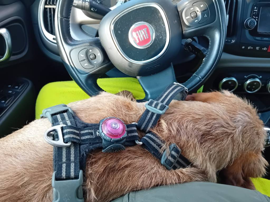Bij thuiskomst tref ik Rebel aan met een half kale staart: hij is weer aan het haren trekken geweest. Dus voor het uitladen van de auto naar zolder om een kap voor hem te regelen. Morgen maar naar de dierenarts want het zit volgens mij nog niet goed met die anaalklieren van hem. Noor is nu doodsbang voor Rebel met kap en durft amper de kamer door te lopen…