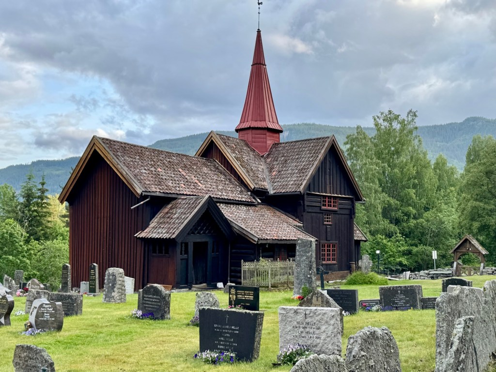 Neergestreken op camping in Rollag; dichtbij de weg, wel heel mooi aan het water. Na het avondeten nog even de staafkerk bewonderd hier vlakbij. Blij dat ik maar 1 nacht geboekt heb; de “geadverteerde” wandelroutes zijn naast/op de straat en dit vind ik geen goed idee.