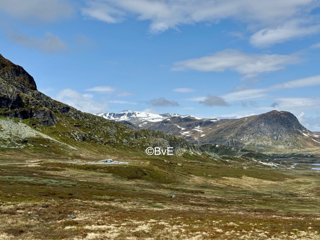 Vertrokken van de camping op weg naar Hjerkin. De route is zo mooi dat ik er de hele dag tijd voor neem. Onderweg het gemak van een grote Kiwi-supermarkt. Daar een mooi parkeerplekje in de schaduw gevonden voor de auto en even uitgebreid gewinkeld.