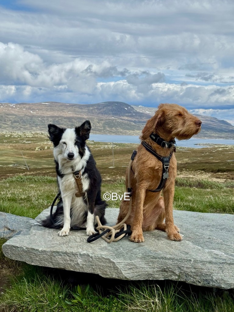 Tegen etenstijd aangekomen op de camping waar de aardige campingeigenaresse net de mooiste tentplek weggegeven heeft aan een stel trekkers met minitentje. De andere vrije tentplek vindt ze niet geschikt omdat haar Setter dan uitkijkt op mijn hondenspul en dan vermoedelijk niet stil blijft. Ik krijg dus een caravan/camperplaats. Ook prima: in recordtempo tent opgezet en ingericht. Honden even snel op het eigen uitlaatterrein van de camping laten rennen tot Noor levensgevaarlijke zoomies ging vertonen. Ze gaat gewoon racen: rotsblokken geen belemmering.