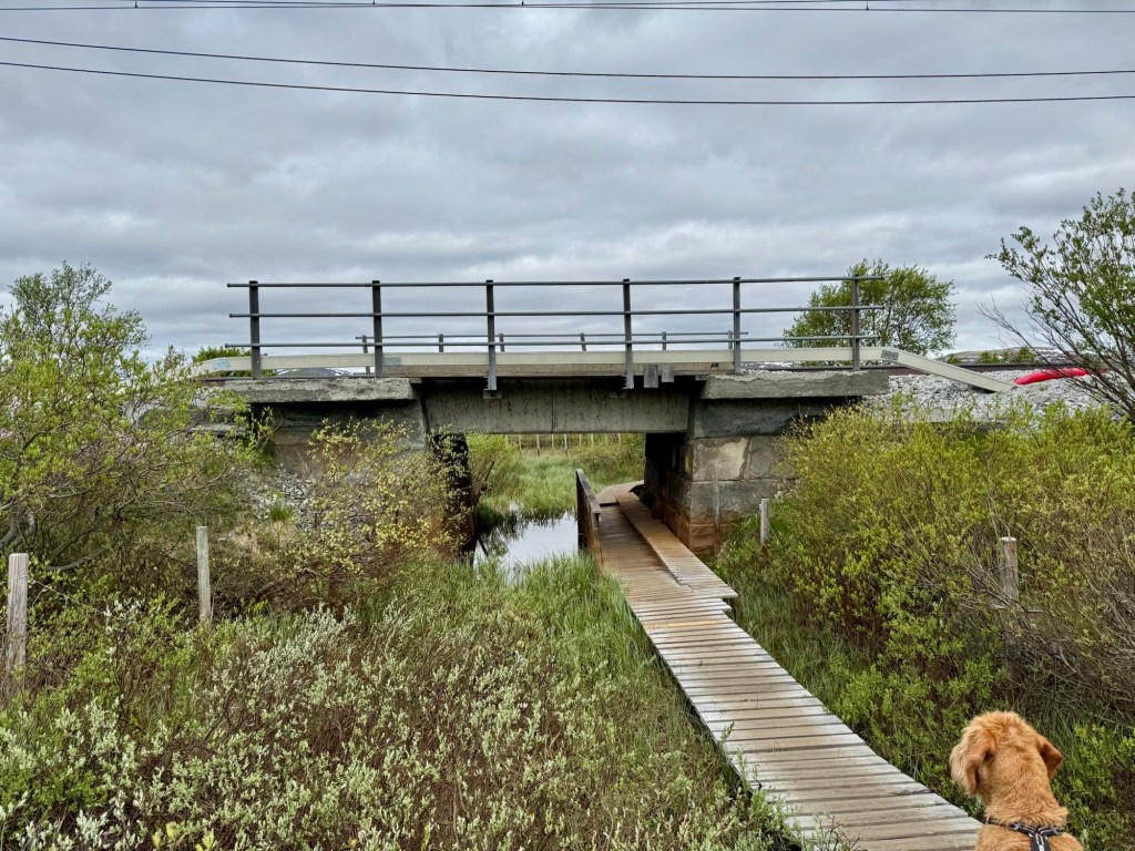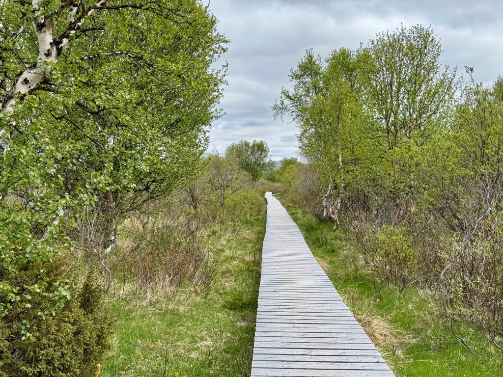 Weer in de auto en op weg naar de volgende wandelparkeerplaats: Fokstumeyra een groot vogelreservaat. Pad van allemaal plankjes door het moeras. Trots op Noor en haar vertrouwen. Om over het overstap-gaas-hek te komen is er namelijk een grote opstap van twee treden. Amy til ik op de arm er met gemak overheen. Noor wacht dan keurig op zit tot zij aan de beurt is en luistert naar mijn stap op waarbij de ze eerste tree zelf neemt en ik haar daarna over het hek til.