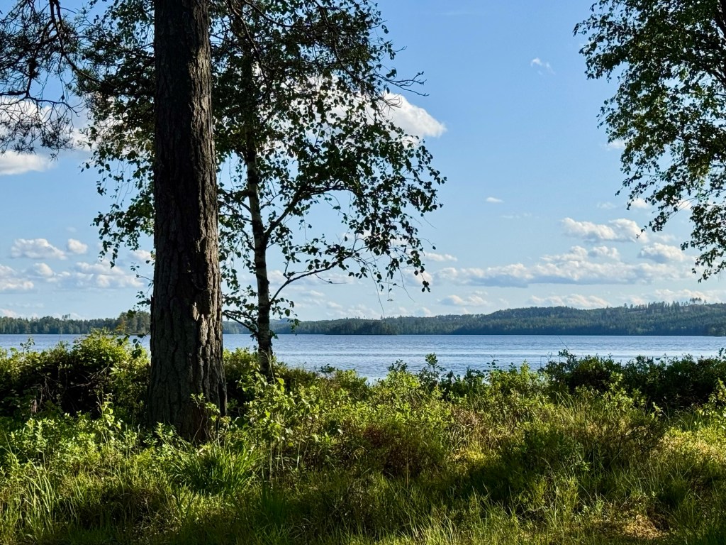 Vanaf de camping zijn er wandelroutes uitgezet en wij doen de 1,5 kilometer. Onderweg veel elandpoep in het bos, we zien de familie zwarte specht spelen over de boomstammen en Noor heeft haar neus constant aan de grond. Veelvraat en wilde zwijnen gebied dus er zal wel wat voor haar bij zitten vrees ik.