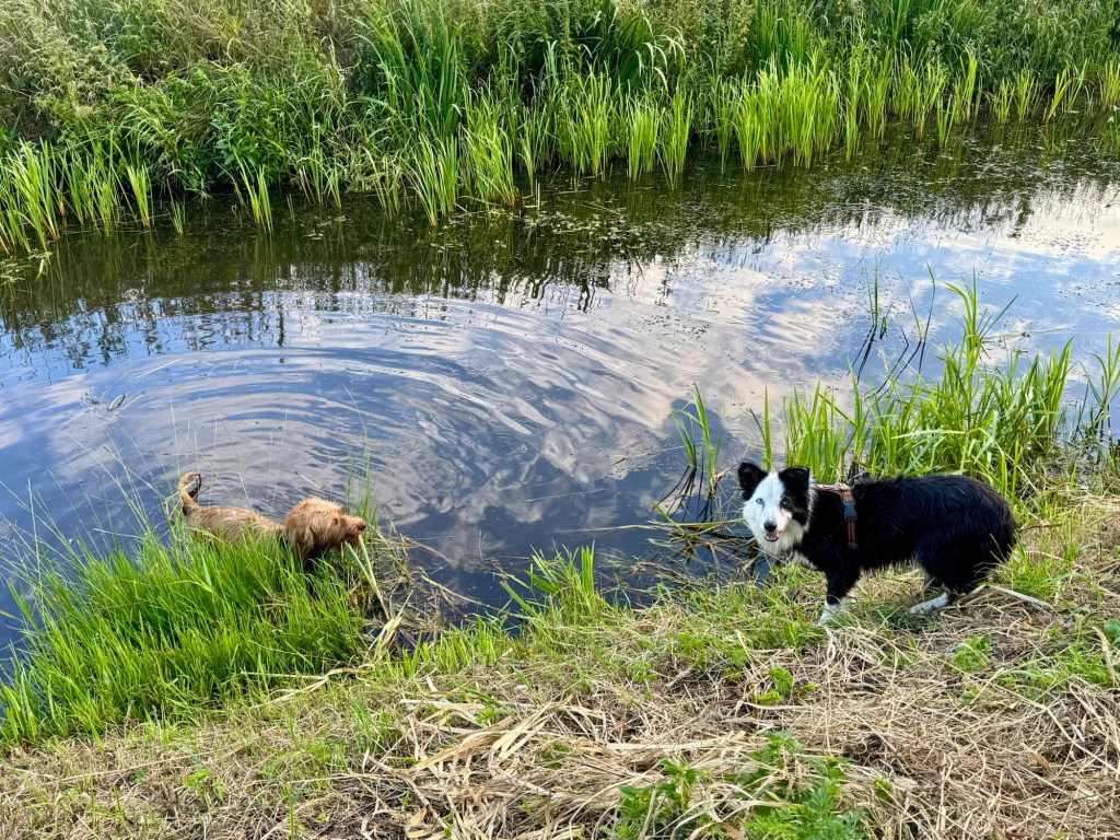 Avondwandeling in het Mensingebos waarbij Noor en Amy veel in het water te vinden zijn.