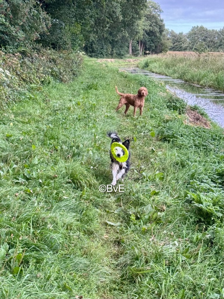In de avond pas weer aktie met een wandeling in de Mensinghe. Speeltje mee en paar keer lekker zwemmen voor de dames.