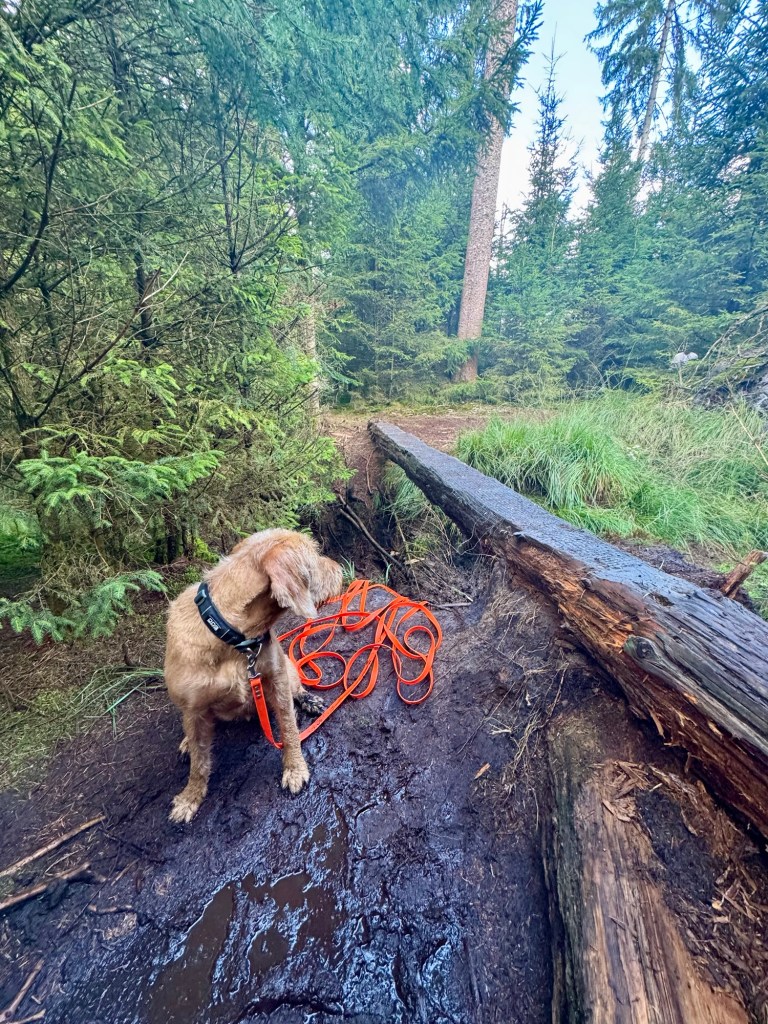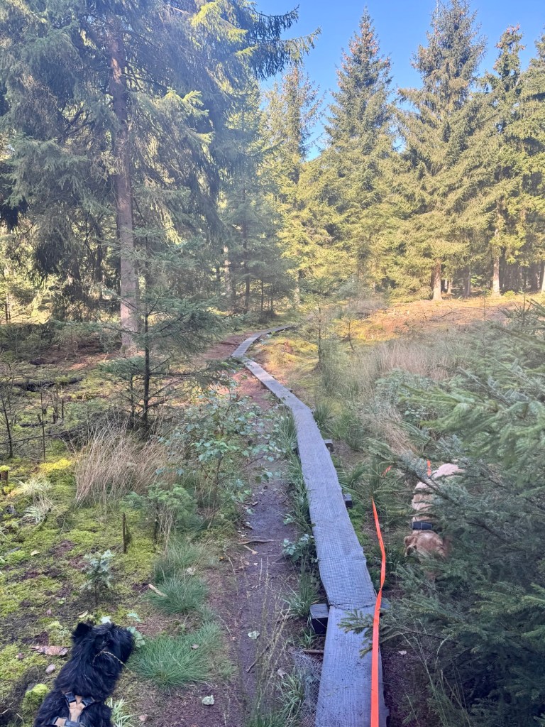 Mooi om te zien dat Noor het nog goed weet sinds de vakantie want als ik op de plankjes aangeef, blijft ze op het vlonderpad. Op sommige plaatsen was dit pad wel een halve meter van de grond en is luisteren echt noodzaak.