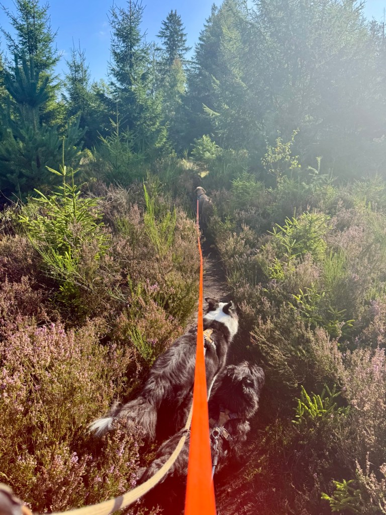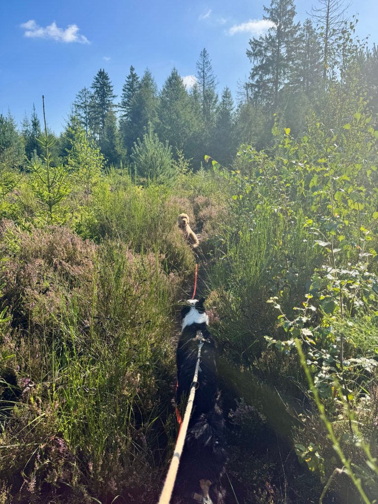 Mooie route over smalle paden, langs hei en over vlonderpaden. Noor aan de lange lijn zodat we ook fijn in een treintje kunnen lopen.