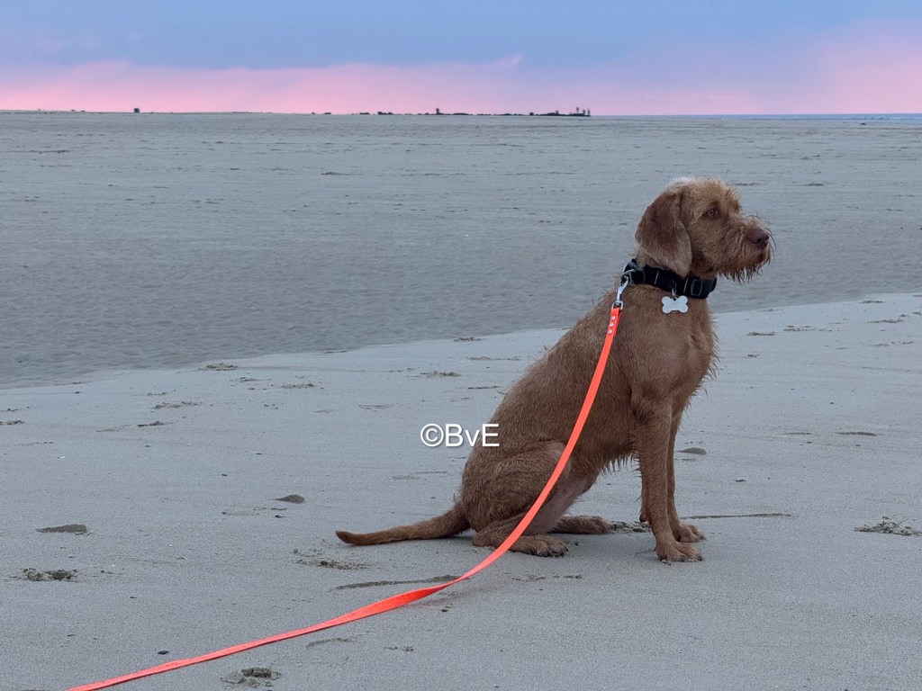 Wakker worden en zulke blije koppies zien…zij waren al een tijdje wakker vermoed ik maar gaven geen kik. Gelijk naar het lege strand gereden en ze lekker laten rennen. Op de terugweg Rebel en Amy gewoon niet aangelijnd, zo lekker rustig. Rebel had een grote stok gevonden op het strand en wilde deze persé mee naar de auto. Prima. Komen we op de strandopgang een groepje tegen van een stuk of tien blonde dames strak in de sportkleding (en de make up) op weg naar strandyoga. Rebel wacht ze gewoon midden op het pad op: kwispelend ministaartje en helemaal klaar om de oh’s en ah’s in ontvangst te nemen. Heb je als vrouw geen hond bij je dan is ie zó charmant.
