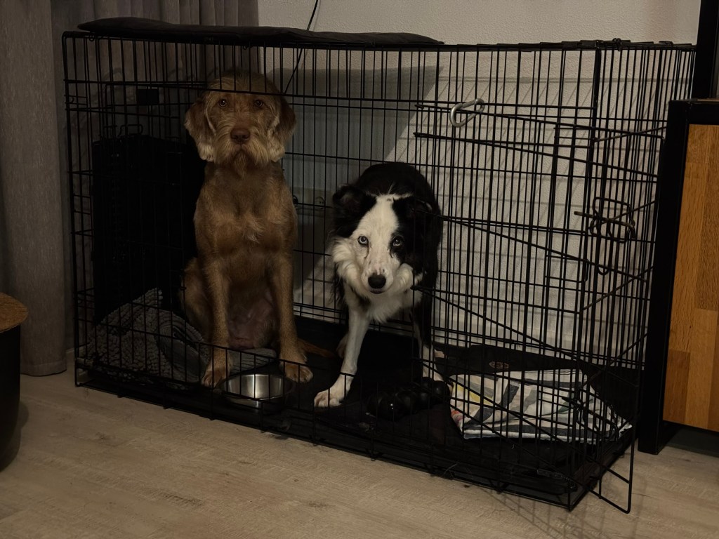 Passessie met gekregen tuigen; beide dames hebben het na 1 tuig wel gezien en gaan samen in de bench: