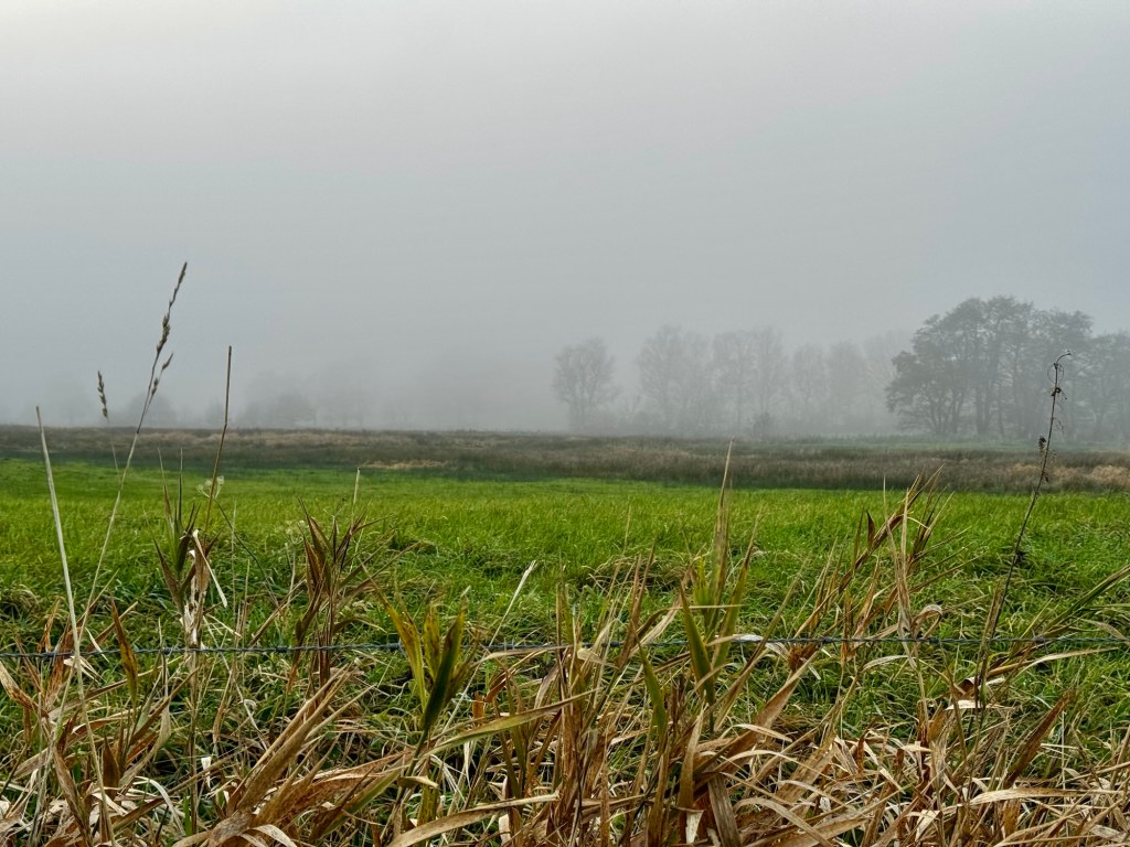 We komen in de mist een aardige oudere man tegen die een gesprek begint over de mistverrassing. Ik kan Rebel nog net weerhouden van een enthousiaste begroeting uit het niets. Soms is het gewoon niet te snappen waarom hij iemand ineens het einde vindt….ligt ie netjes onder appèl en tjakka dan krijgt ie de geest. Maar de Vizsla zit! Impulscontrole versie 2.0 geactiveerd.