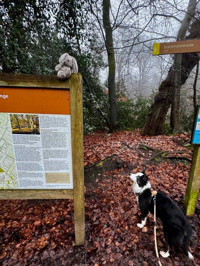Rondje bos gemaakt en maar 1 wandelaar getroffen; zijn Friese stabij Joy vond mijn team zo spannend dat meneer een heel stuk terug moest lopen en haar aangelijnd mee moest nemen. Ondertussen Noor en Amy in zit op het bospad. Mooie training.