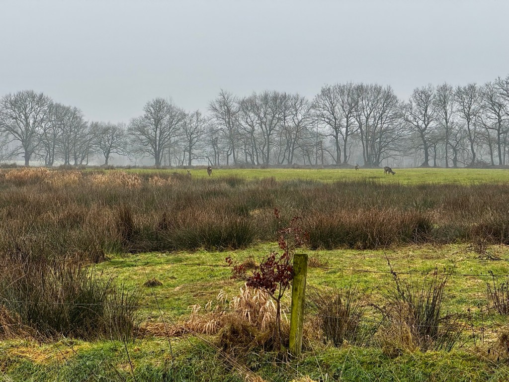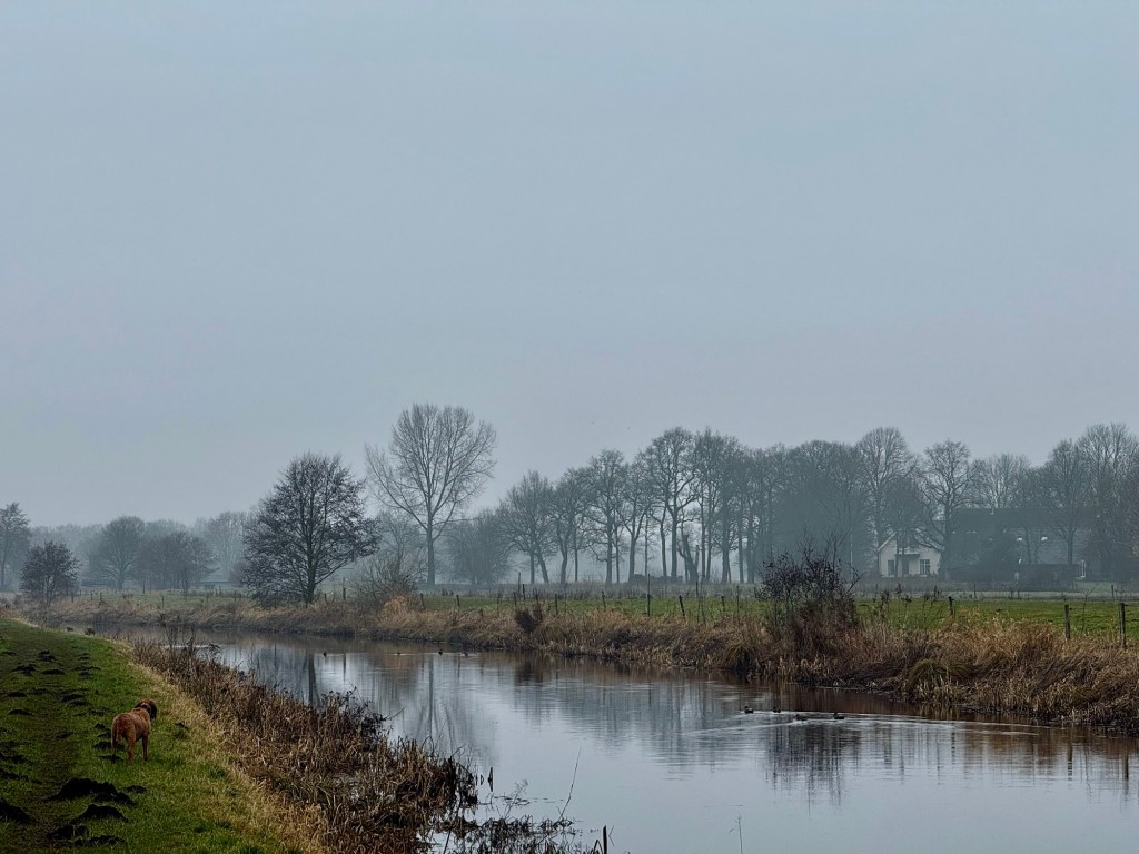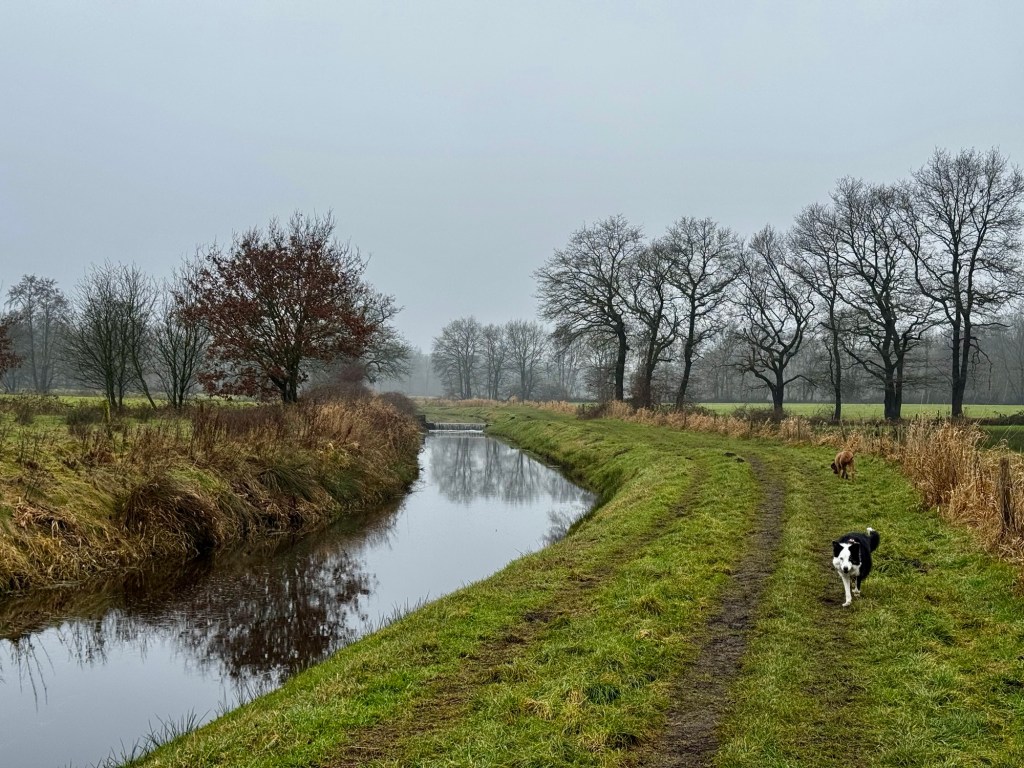 Dan spot Noor een witte reiger in de sloot; ze schiet er gelijk van door. Ik grijp fluit, wil haar terug fluiten en denk ineens als ik naar haar beweging kijk: ik doe het niet. Precies op dat moment keert zij terug. Mijn conclusie; Noor weet om de donder wel hoeveel tijd zij heeft voor een ongeoorloofde charge. Ik ken haar door en door maar zij mij dus ook :).