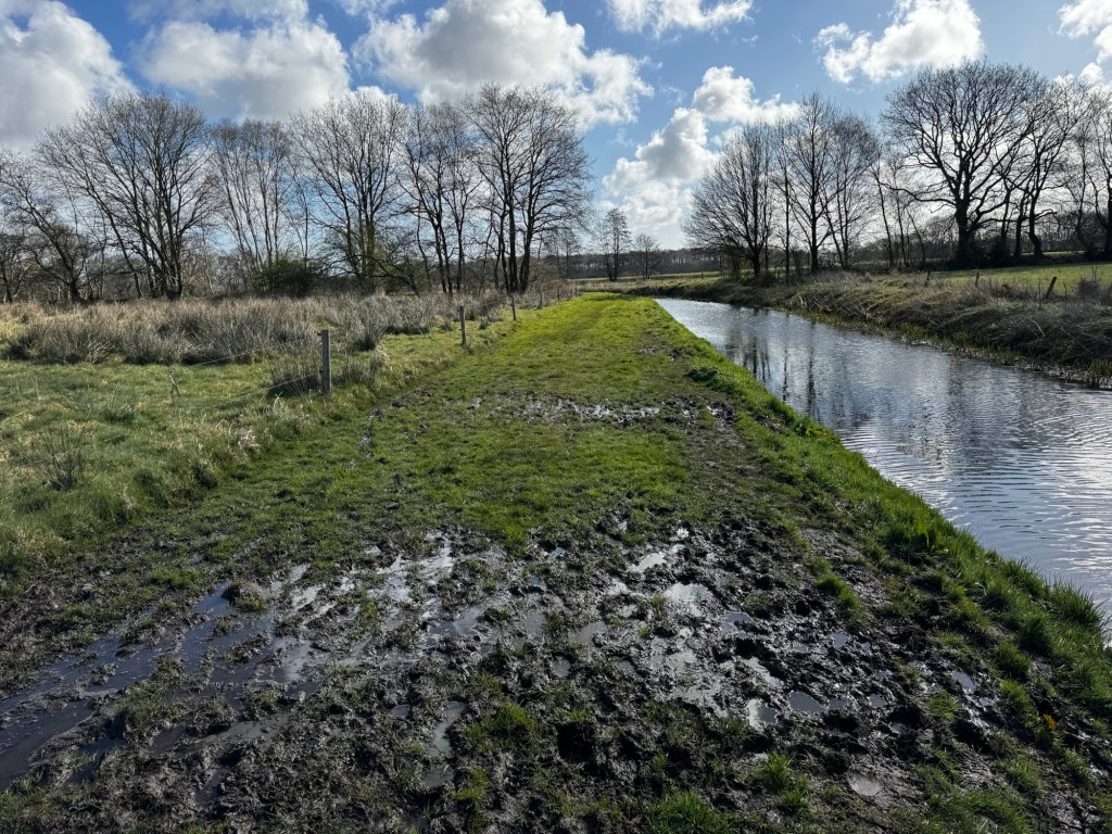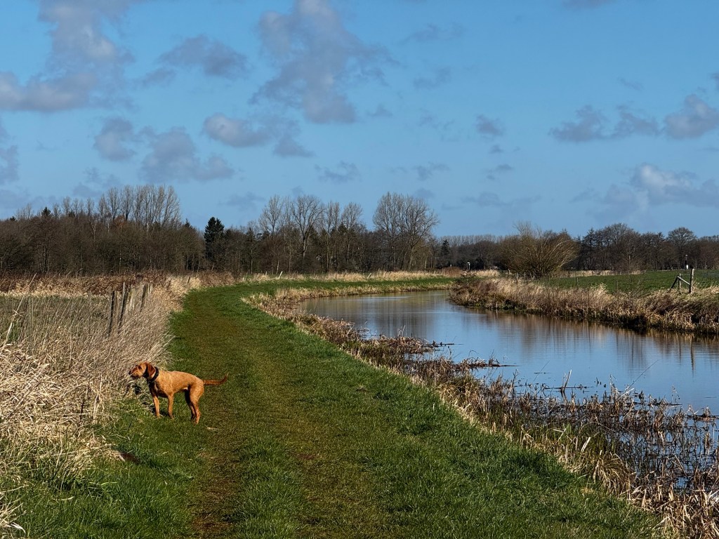We ontmoeten een leuke Friese stabij, hardlopers en nog wat wandelaars. Vlakbij de stuw staat er een grote hond op het pad, type Kangalkruising. Staart recht omhoog en wachtend. Daar hou ik niet van dus ik wacht een volle 5 minuten voor ik roep of er ook iemand bij de hond hoort. Er komt bevestigend antwoord vanaf het water, daar zit blijkbaar een meneer te chillen op het bankje. Ik vraag heel netjes of hij misschien zijn hond even bij zich kan houden omdat ik er graag langs wil met een vervelend hondje. Het antwoord van meneer: laat ze dat zelf onderling maar regelen. Het typische antwoord van een eigenaar zonder recall en een irritant stuk hond.. Geantwoord: sorry, daar ben ik niet van, ik loop wel om hoor, geen probleem, een hele fijne dag! Teruggelopen en hem nog een zak in de modder toegewenst. Op mijn omweg hoor ik de protesten van meerdere andere honden die er wel langs moeten. Het was dus een wijze keuze. Als Rebel een mastiff van van ponyformaat bij de keel durft te pakken is deze hond ook vast geen enkel punt. Dus, nog meer meters gemaakt…